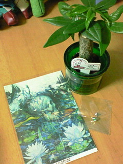 デザフェスで観葉植物を買うとは思いませんでした;植物じゃなくてその鉢?ポット?とにかく入れ物が水がちょっとずつ中に溜まるだけで逆さにしても入れた水が零れないってゆーシロモノで!他に青とか赤とかありました。